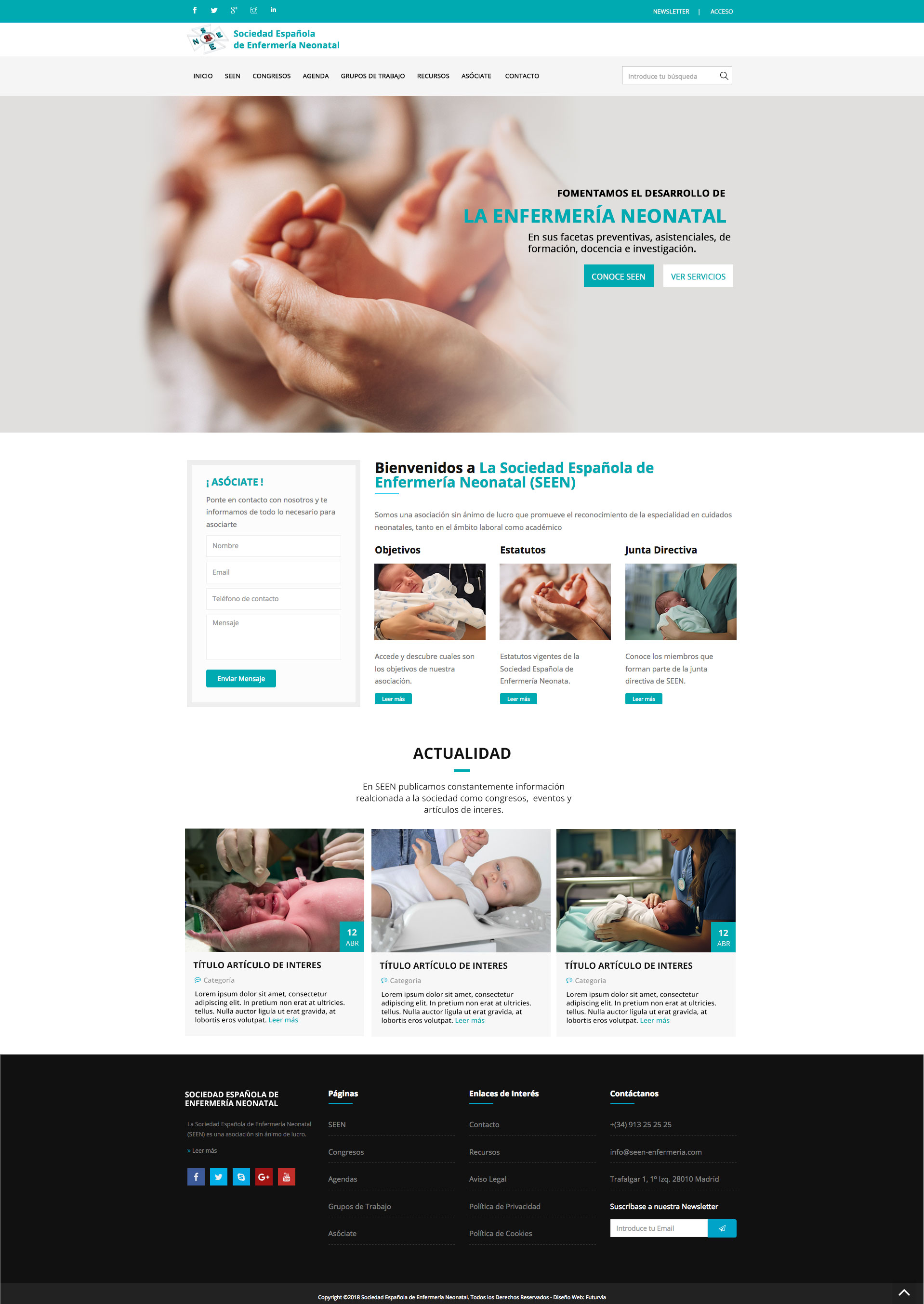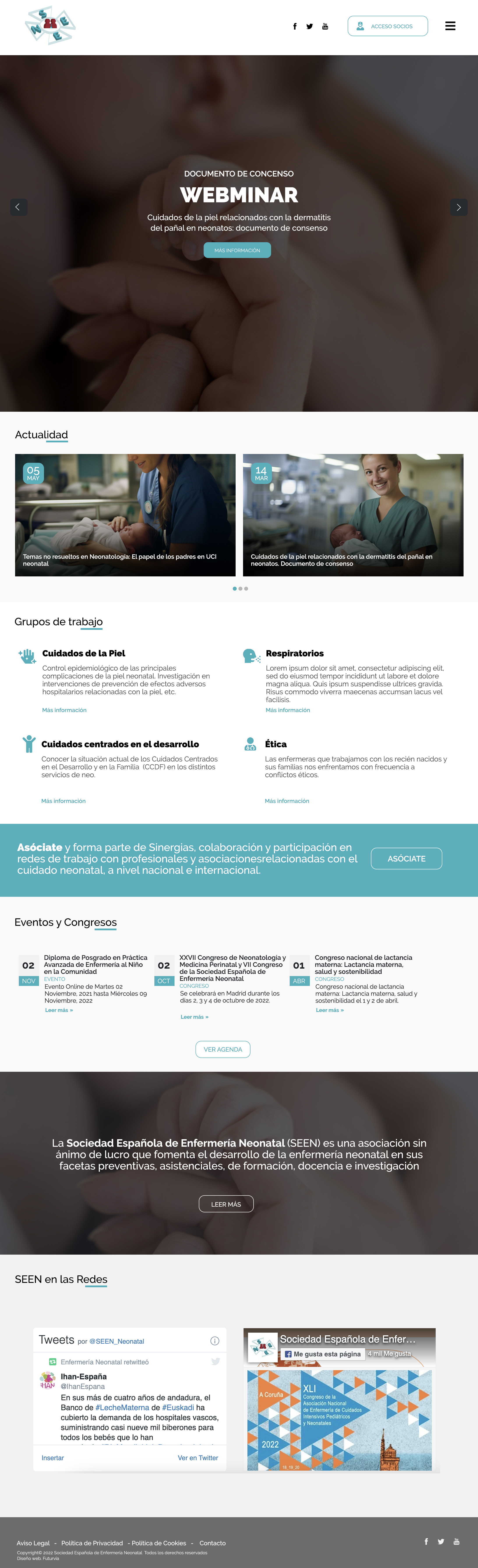 Proyecto de Diseño Web para la Sociedad Española de Enfermería Neonatal (SEEN): Hemos desarrollado una plataforma en Drupal 9, un gestor de contenidos robusto que nos permite crear contenido específico para las necesidades de nuestro cliente. La web incluye una agenda de eventos, webinars, artículos de actualidad, y contenido exclusivo para cada grupo de trabajo de la SEEN. Además, el diseño es intuitivo y limpio, facilitando una experiencia de usuario óptima.